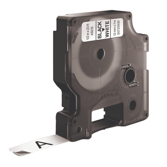 · Kassette für Beschriftungsgerät D1 Schriftband D1 · Verwendung für Gerätetyp: DYMO LabelPOINT 150, 250, 350, LabelMANAGER 150, 350, 450, 120P, 210D, 220P, 260P, 360D, 450D, PC II · Typbezeichnung des Beschriftungsbandes: D1-Band · wieder ablösbar, UV-beständig, wasserabweisend, temperaturbeständig von -18°C bis +90°C · Material: Kunststoff, laminiert · Größe (L x B)->unterschiedl. Einheiten: 7 m x 12 mm · Farbe Druck/Farbe Schriftband: Schwarz/Weiß