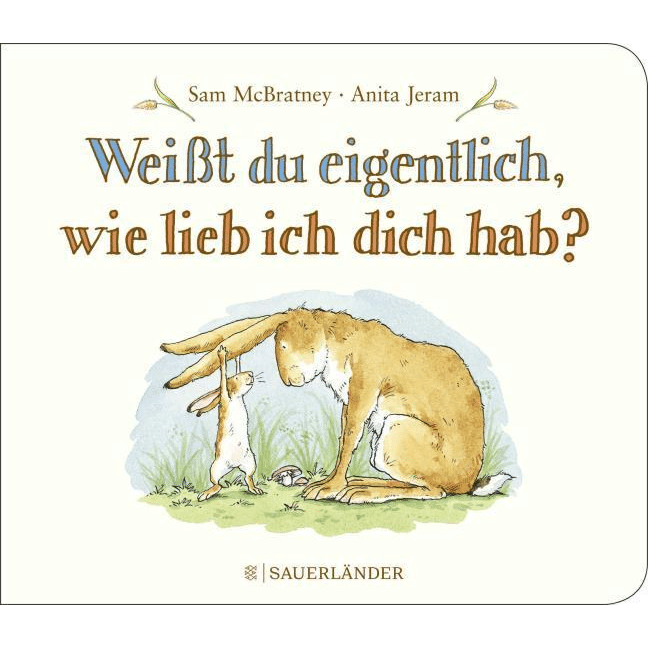 Wie lieb? Sooo lieb hat er ihn und breitet die Ärmchen aus. Aber die Arme des großen Hasen reichen weiter. Wie lieb man sich überhaupt haben kann, das zeigt dieses bezaubernde Buch.
