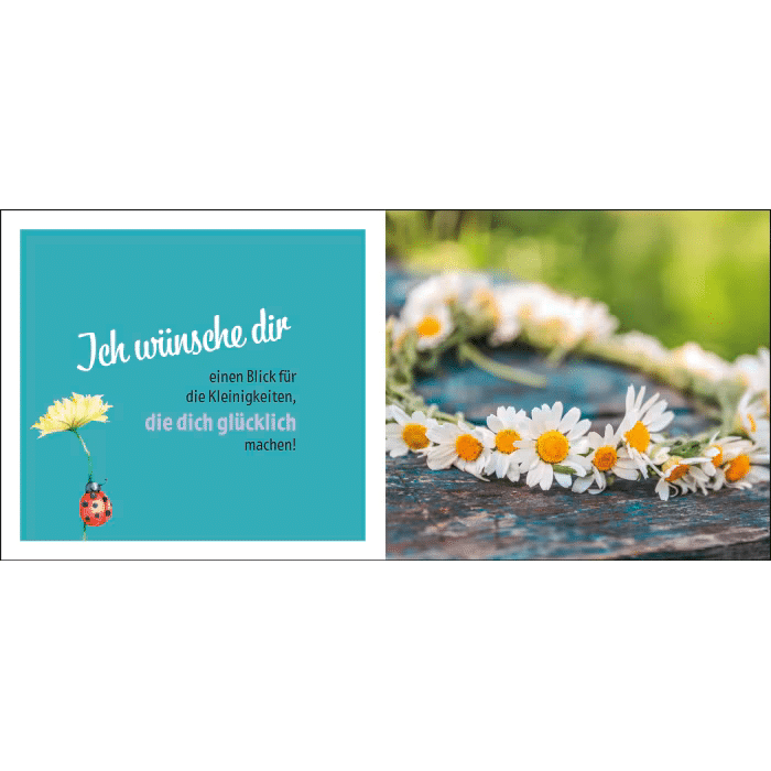 - Geschenkbuch zum Thema Glück mit 48 Seiten (Maße: 12,3 x 11,3 cm)