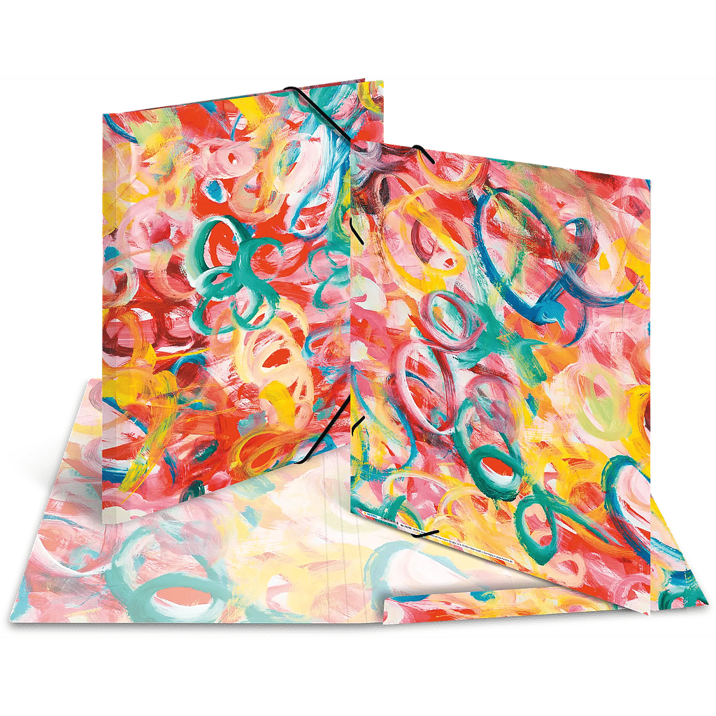 · Bedruckte Gummizugmappe aus langlebigem Karton mit bunten Motiven
