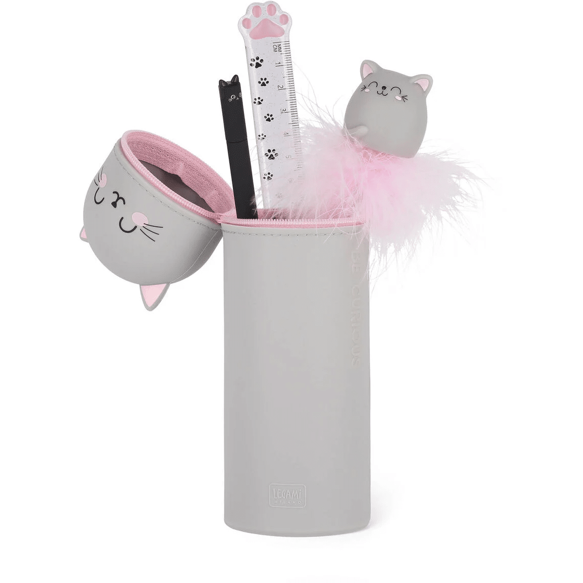 Alle Superhelden haben eine Doppelidentität: Kawaii, das 2-in-1-Federmäppchen aus weichem Silikon mit „Kitty“-Motiv von Legami,