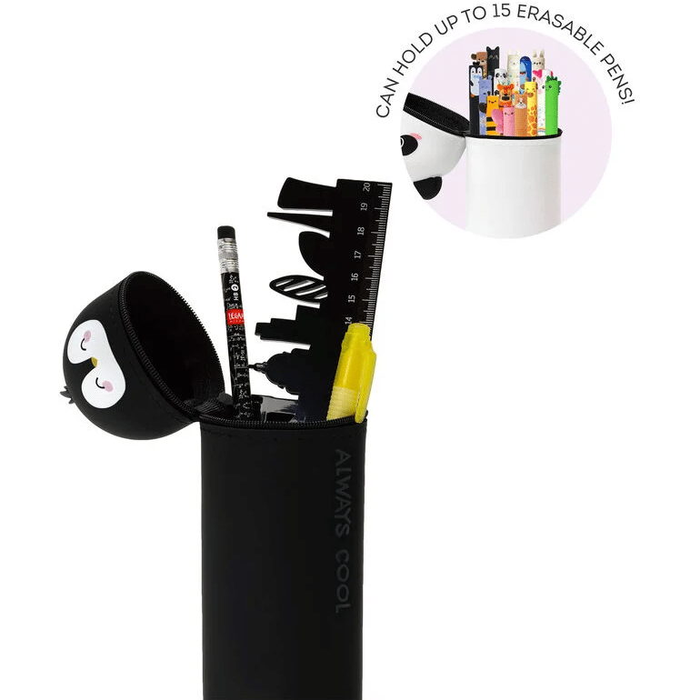 Alle Superhelden haben eine Doppelidentität: Kawaii, das 2-in-1-Federmäppchen aus weichem Silikon mit „Penguin„-Motiv von Legami,