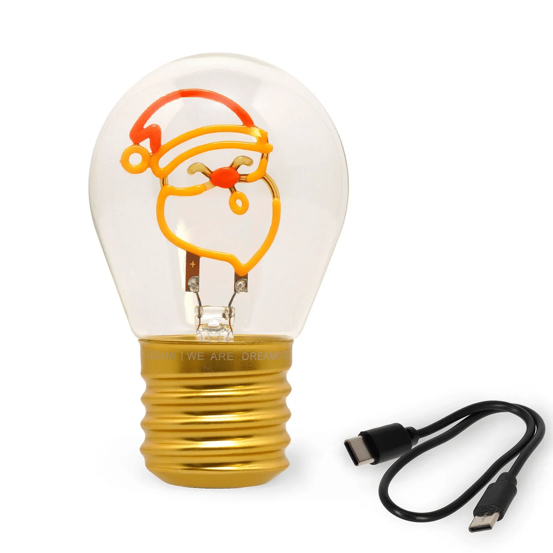 Einfach aufladen, einschalten und schon bringt die leuchtende Glühbirnenform Weihnachtsstimmung in dein Zuhause.