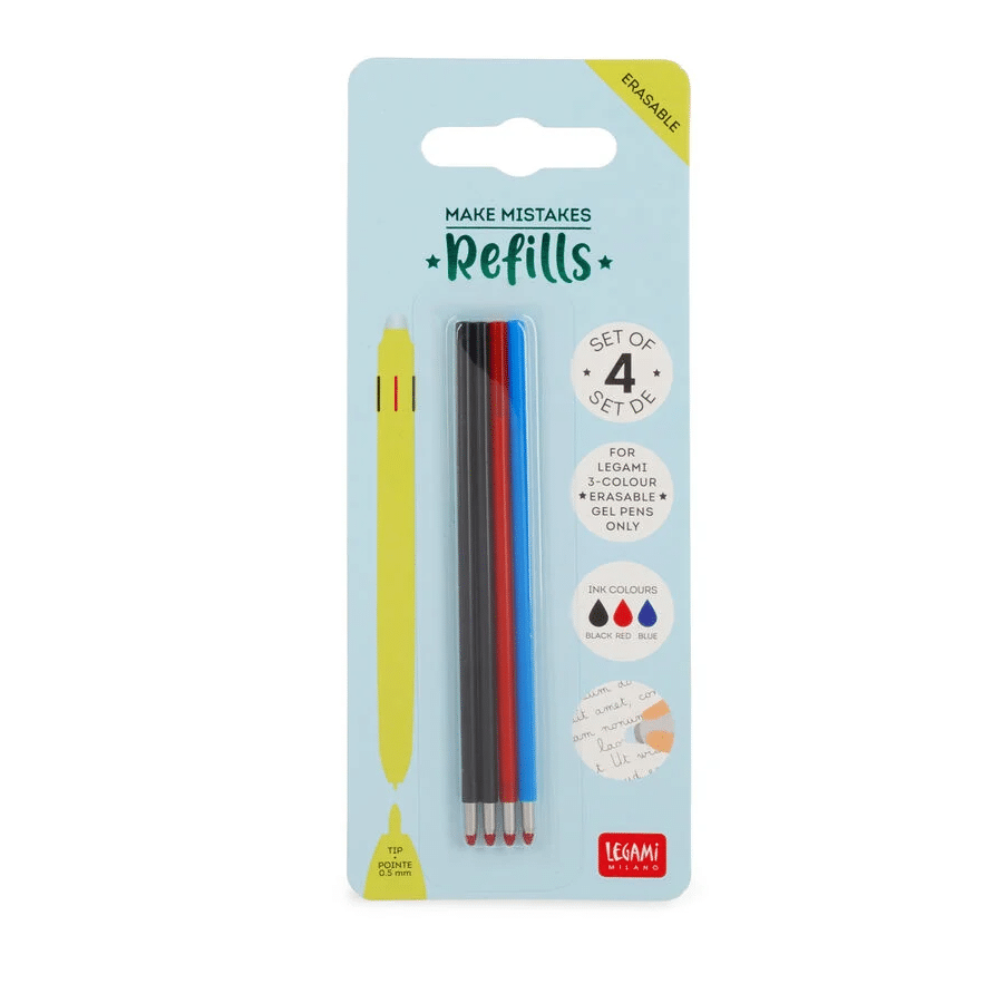 Einige Fehler zu viel haben deine Kraft erschöpft? Zeit zum Auftanken! Du brauchst nur die Ersatzminen für löschbaren Gelstift in 3 Farben im 4-er Set von Legami, damit es mit dem Schreiben und Löschen jederzeit weiter gehen kann.