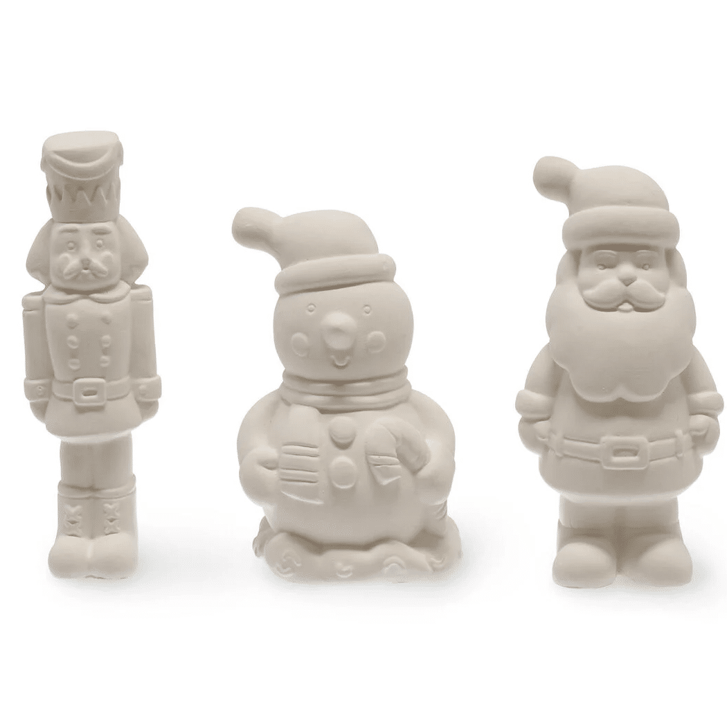 Enthält: 3 Gipsfiguren (Nussknacker, Schneemann, Weihnachtsmann);