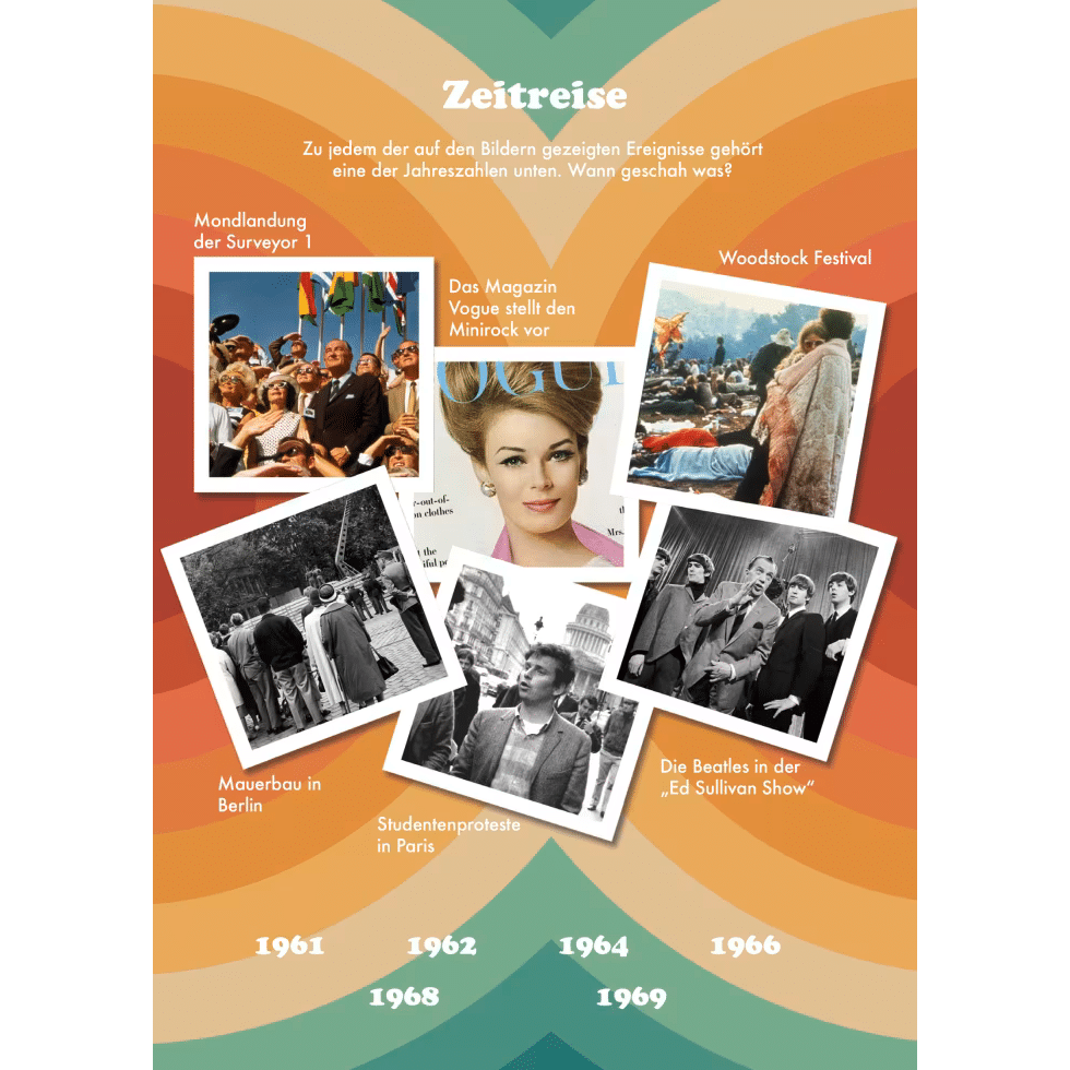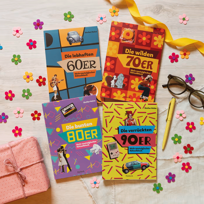 Flower-Power, Beatles-Musik und Mondlandung – die 1960er waren eine wilde Zeit! Dieser Rätselblock im Retro-Design sorgt dafür, dass Erinnerungen wach werden. Rätsel dich mit Klassikern wie Sudoku und Kreuzworträtseln, aber auch mit kreativen Bildrätseln und Quizfragen, zurück in deine Kindheit und Jugendzeit. Egal, ob als Geburtstagsgeschenk oder als Mitbringsel zur Mottoparty, die farbenfrohen Rätsel mit historischen Fotos sorgen garantiert für gute Unterhaltung und sind sowohl alleine als auch mit Freund*innen und Familie spielbar. Dabei ist der „Weißt du noch“-Effekt garantiert!