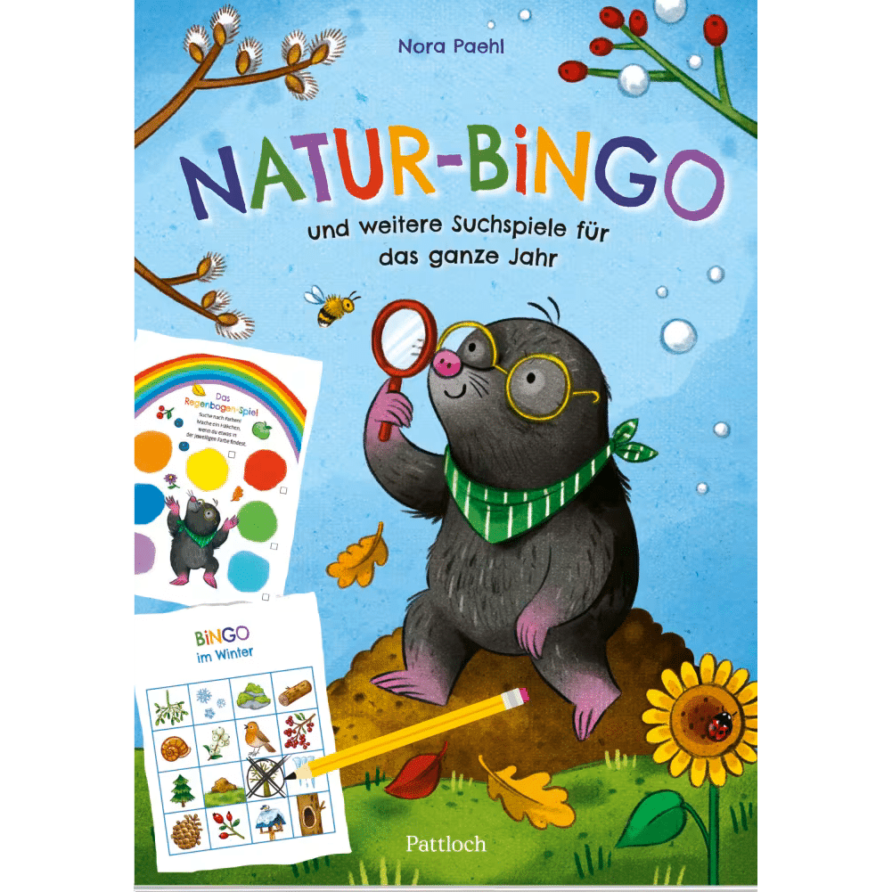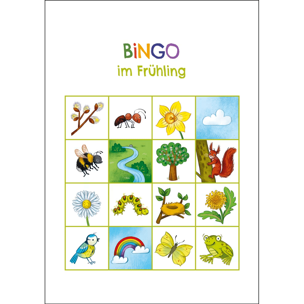 Egal ob im Frühling, im Sommer, im Herbst oder im Winter: Dieser kunterbunte Block mit Natur-Bingos und weiteren Suchspielen für Kinder ab 5 Jahren macht jeden Spaziergang oder Ausflug zu einem Abenteuer! Sieben unterschiedliche Bingo-Kategorien bieten Spaß zu jeder Jahreszeit und werden durch lustige Suchaufgaben nach Farben, Formen und Zahlen abgerundet. Für keines der Spiele muss man lesen können und alle sind allein oder in der Gruppe spielbar.