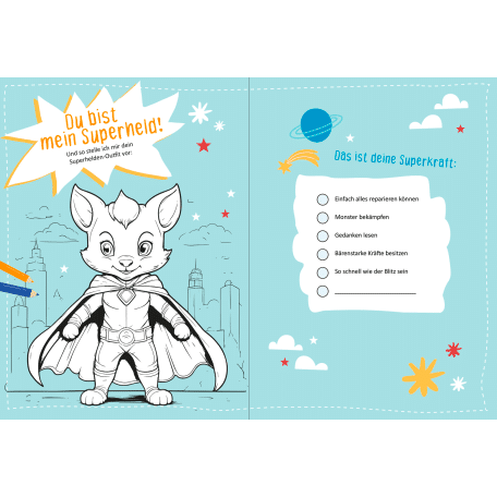 - Fröhlich bunte Illustrationen sorgen für viel Spaß beim Ausfüllen und abwechslungsreiche und konkrete Aufgabenstellungen leiten beim Ausfüllen durch das Buch