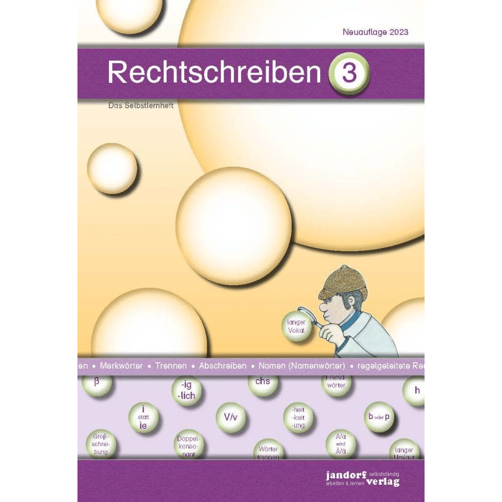 Darüber hinaus üben sie Nachdenk- und Merkwörter mit ausgesuchten rechtschreiblichen Merkmalen (u. a. doppelte Selbstlaute und Mitlaute, ck, tz, Schreibweisen Eu/eu, V/v, X/x, chs und ß, Dehnungs-h). Ein weiterer Schwerpunkt sind immer wiederkehrende Aufgaben zum methodisch richtigen Abschreiben.